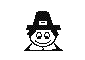His gho is bunched beneath his backpack, and a badge with the king's smiling face is pinned on
